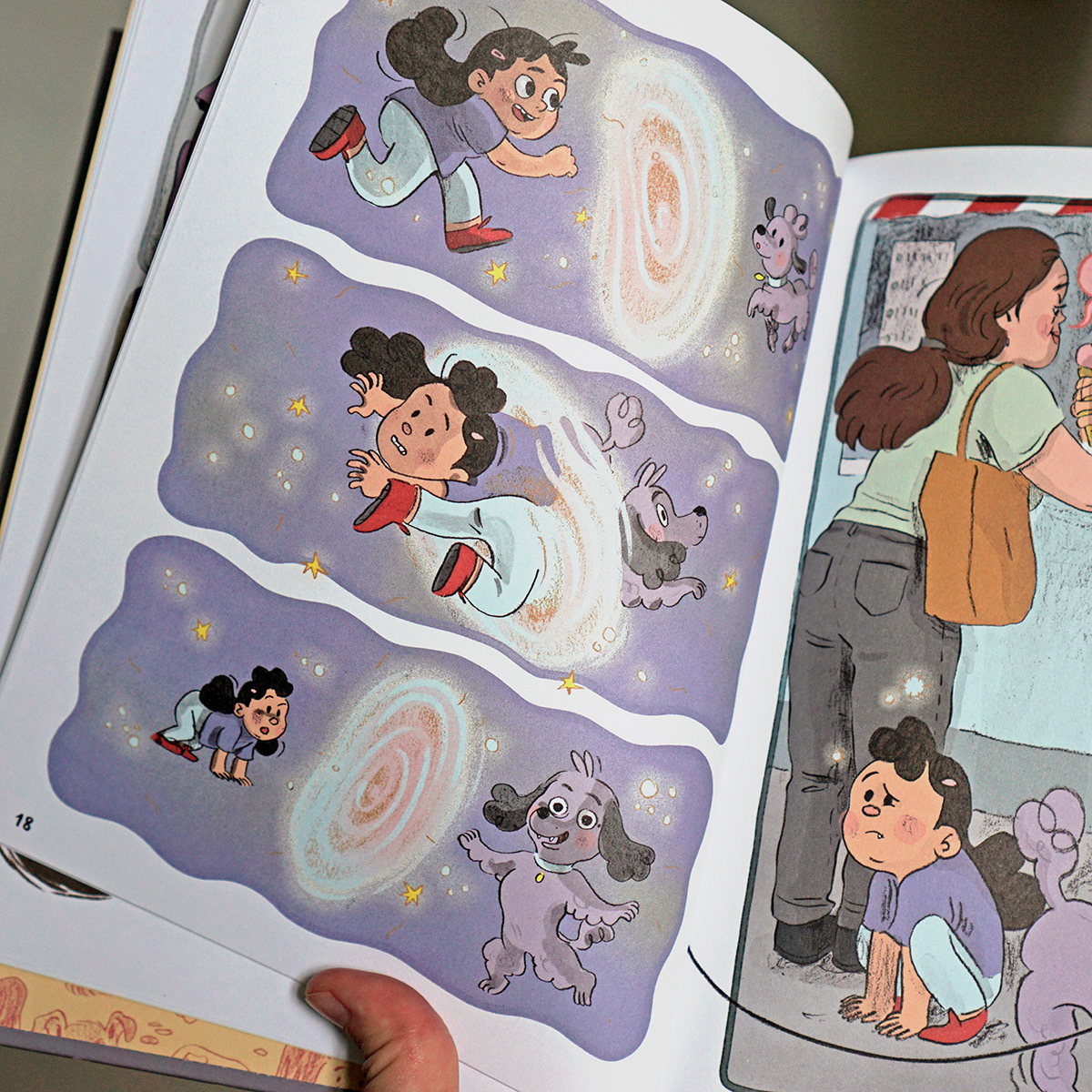 "They don't do anything, they just want to play." Is Mama serious? Dogs are loud and wild and bark like mad. And they sniff at strange things all the time. Dogs are just scary to Selma! "You just have to put yourself in their shoes." All right, Selma thinks, the poodle over there is really cute. With that one I'll switch ... Because Selma is a special girl, she switches with things! She becomes the dog. And the dog becomes Selma. How exciting it is to see the world through dog eyes! But stop: Why does this strange little grandma suddenly pull at her? And where does her mom want to go with that poodle?!